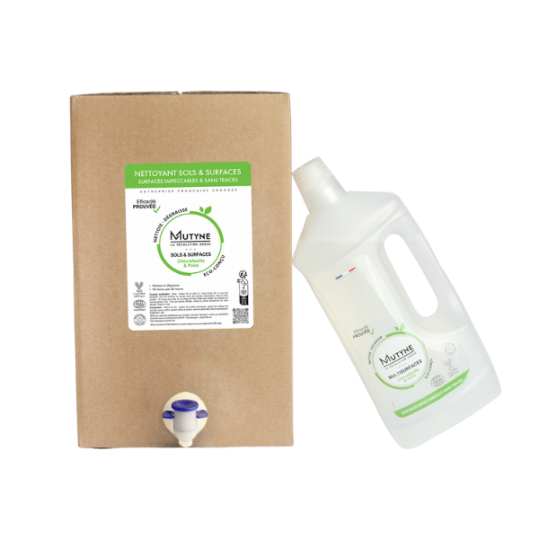 Le nettoyant ménager Mutyne est parfaitement adapté à tous les types de surface (sols, plans de travail, portes, mur, ...).
